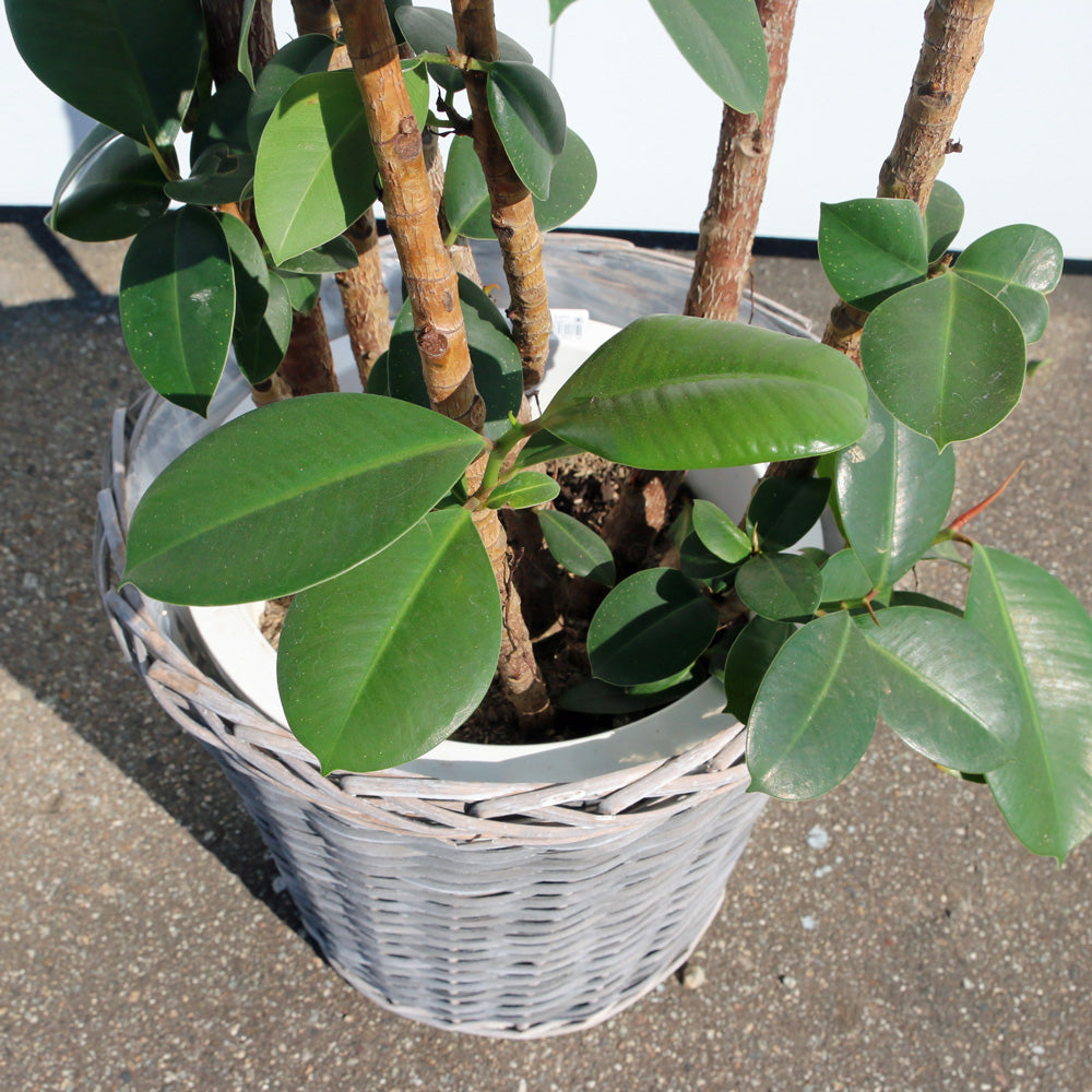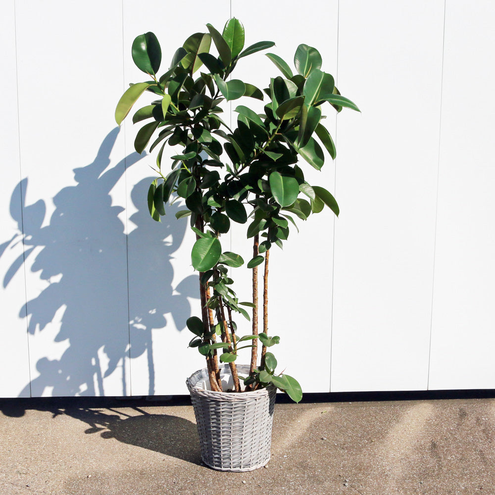 フィカス・ソフィアはツヤツヤの大きな葉が魅力のゴムの木です。高さ180cmの存在感でお部屋の主役に!育て方は簡単で、明るいけど直射日光の当たらない場所がベスト。土が乾いたらしっかりお水をあげて、でも根腐れに注意。寒さには弱いので冬は15度以上をキープしてあげてね。富山県限定配送で、自然の癒しをお届けします!