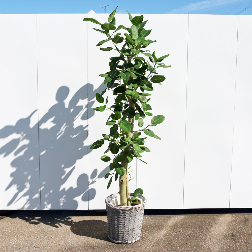 フィカス ベンガレンシスは、大ぶりで丸みをおびた深緑の葉がチャームポイントのゴムの木。高さ200cmのこの子は、部屋の雰囲気を一気に明るくしてくれます。育て方はゆる~くでOK!日当たりは明るいけど直射日光は避けて、土が乾いたらしっかりお水をあげてね。お手入れが簡単だから、グリーン初心者さんにもピッタリ。富山市等限定の配送で、あなたのお部屋に癒しをお届けします!