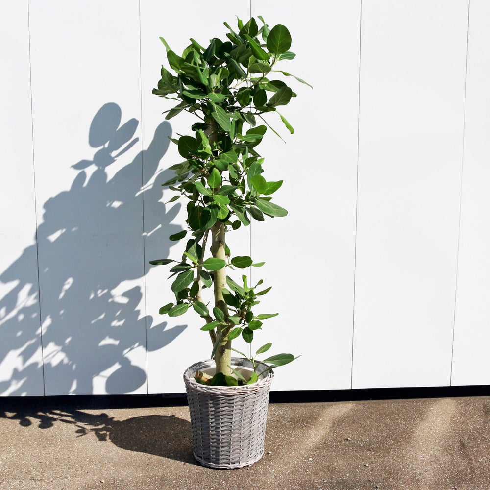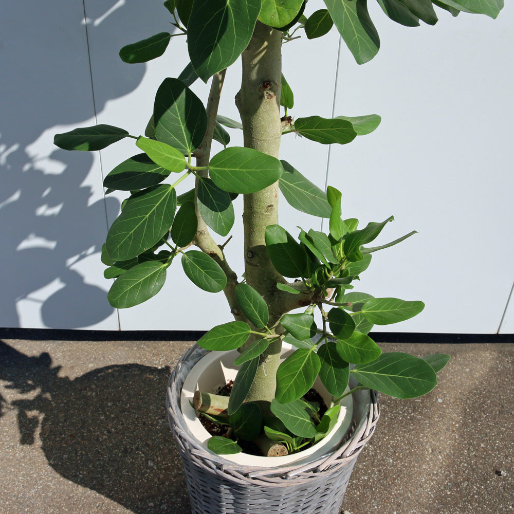 フィカス ベンガレンシスは、大ぶりで丸みをおびた深緑の葉がチャームポイントのゴムの木。高さ180cmのこの子は、部屋の雰囲気を一気に明るくしてくれます。育て方はゆる~くでOK!日当たりは明るいけど直射日光は避けて、土が乾いたらしっかりお水をあげてね。お手入れが簡単だから、グリーン初心者さんにもピッタリ。富山市等限定の配送で、あなたのお部屋に癒しをお届けします!