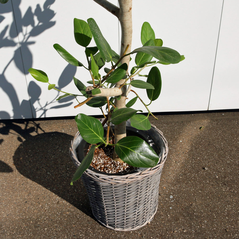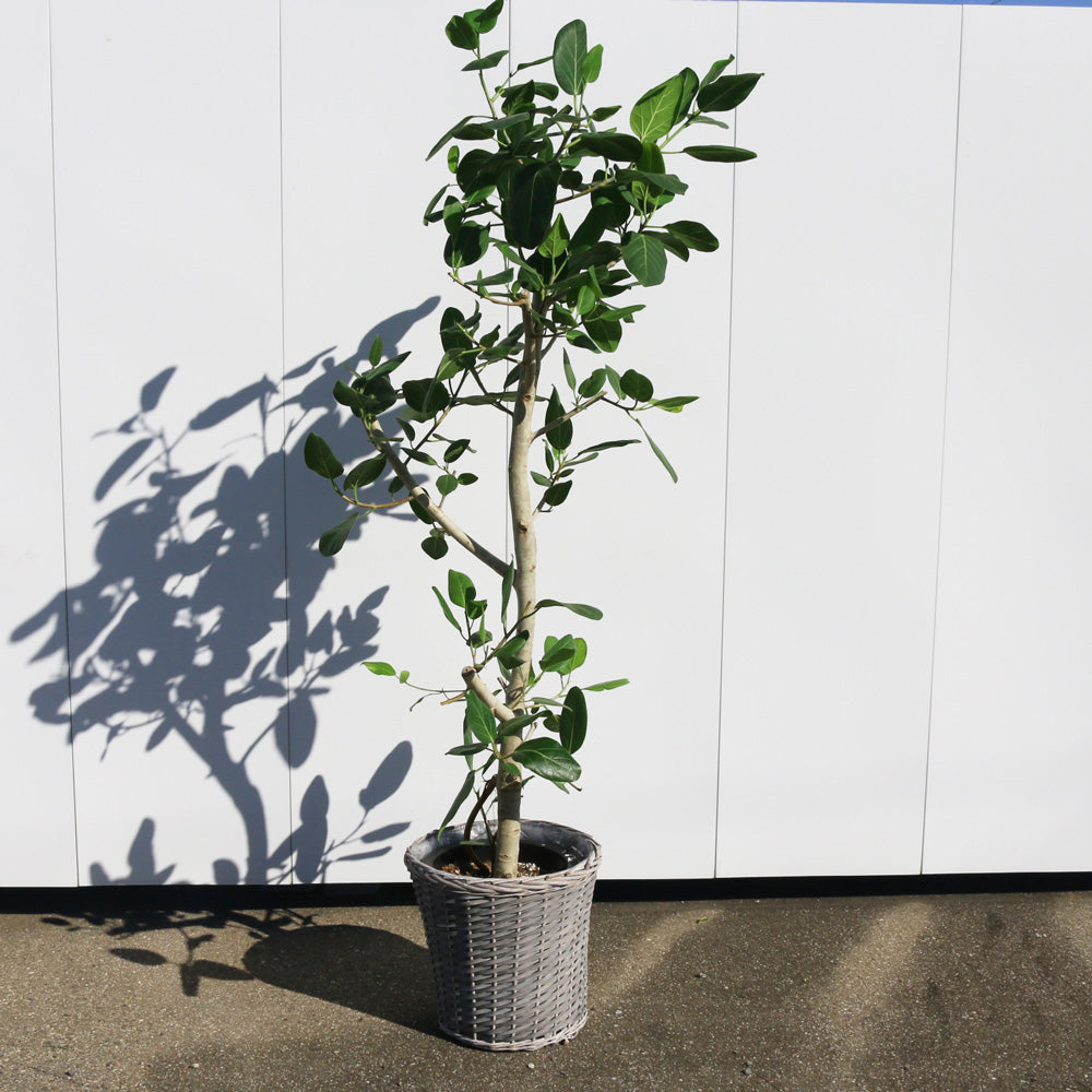 フィカス ベンガレンシスは、大ぶりで丸みをおびた深緑の葉がチャームポイントのゴムの木。高さ190cmのこの子は、部屋の雰囲気を一気に明るくしてくれます。育て方はゆる~くでOK!日当たりは明るいけど直射日光は避けて、土が乾いたらしっかりお水をあげてね。お手入れが簡単だから、グリーン初心者さんにもピッタリ。富山市等限定の配送で、あなたのお部屋に癒しをお届けします!