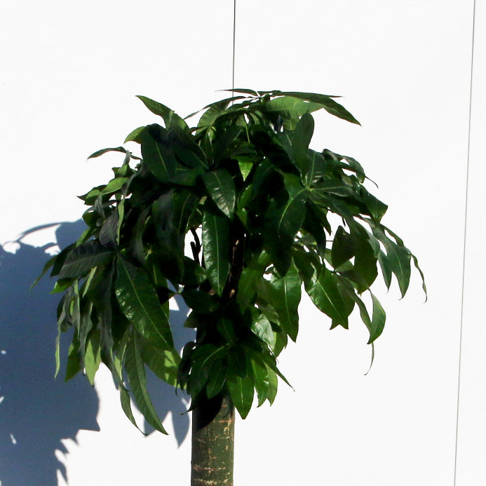 パキラは、光沢のある掌状の葉と太い幹が特徴の観葉植物で、育てやすく、風水的にも「金運アップ」の象徴とされています。