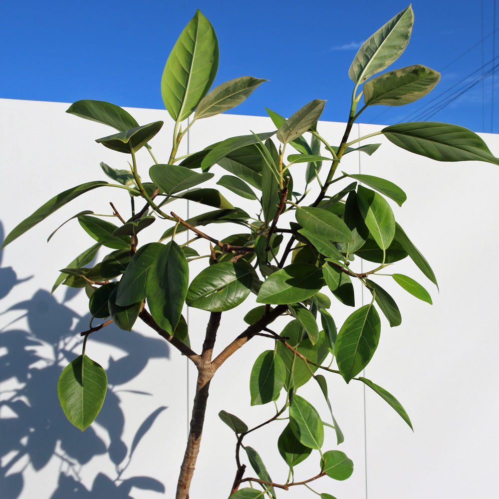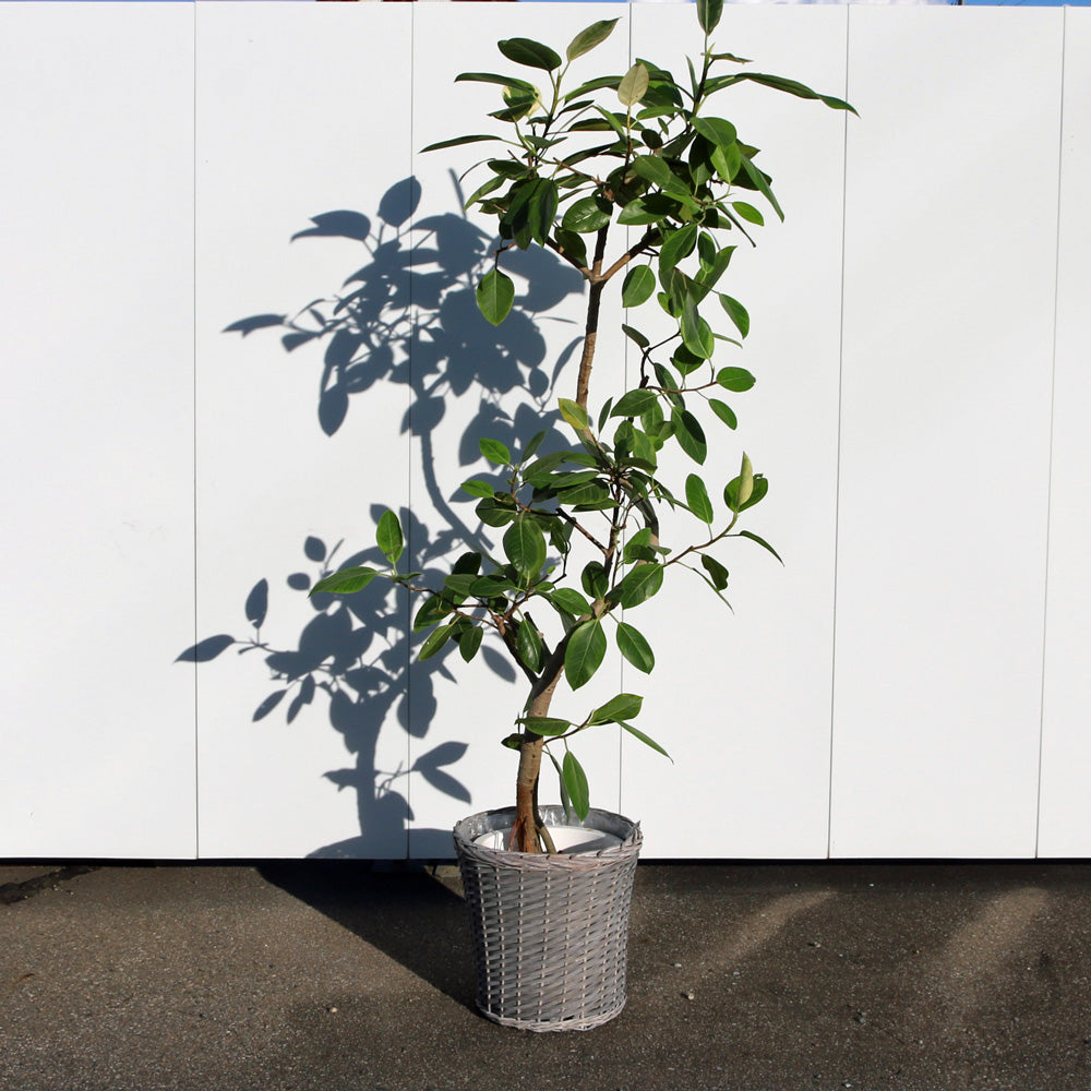 フィカス・アルテシーマは、葉の美しいクリーム色と緑のまだら模様が特徴のゴムの木です。成長するとS字に曲がる幹が個性的で、インテリアにアクセントを加えます。育てる際は明るい間接光を好み、直射日光は葉焼けの原因となるため避けましょう。土の表面が乾いたらたっぷりと水やりをし、過湿を避けることが重要です。空気の流れが良い場所で管理すると、健康的に育ちやすくなります。室内の観葉植物として、空間に自然の彩りと清潔感をもたらします。
