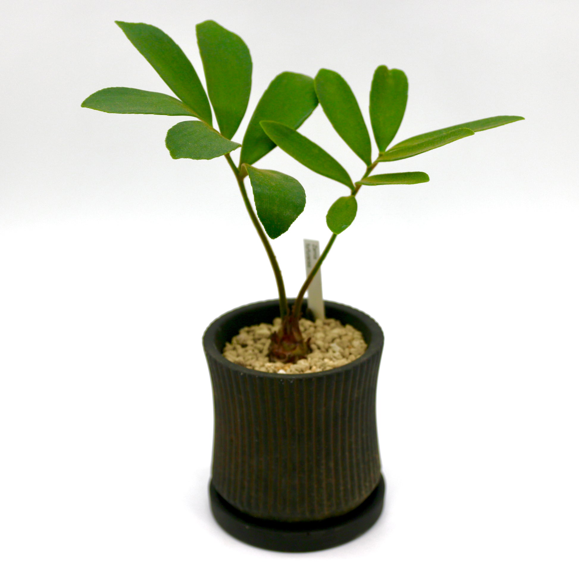 ザミア フルフラセア (メキシコソテツ)陶器鉢、皿付き